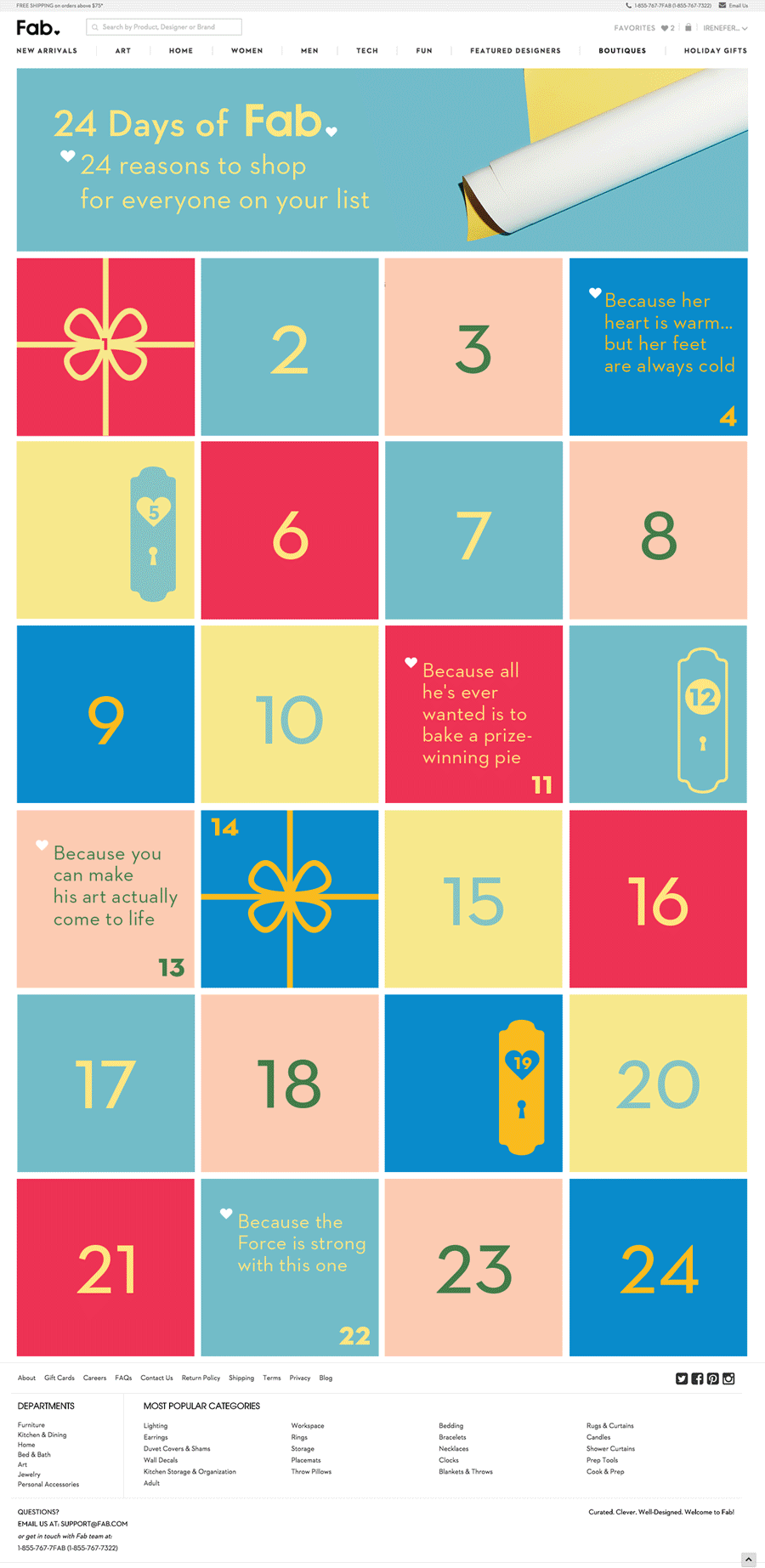 Design for some of Fab.com's Holiday 2015 digital & print assets
